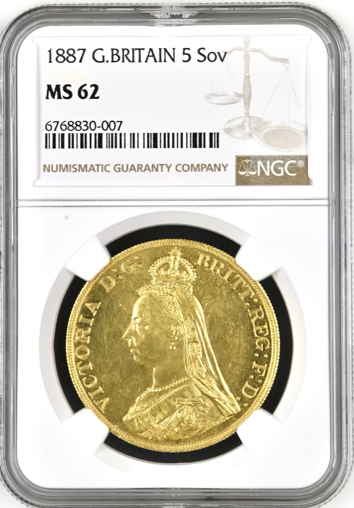 Struck as part of a new coinage in gold and silver to commemorate the Golden Jubilee of Queen Victoria, 1837-1887. The coins all shared a new "'Jubilee" obverse of the Queen by Sir Joseph E. Boehm, adapted from his own Jubilee medal. The new obverse proved unpopular but was used until 1893 on the regular denominations. The Golden Jubilee 5 and 2 pounds denominations were only struck in 1887.