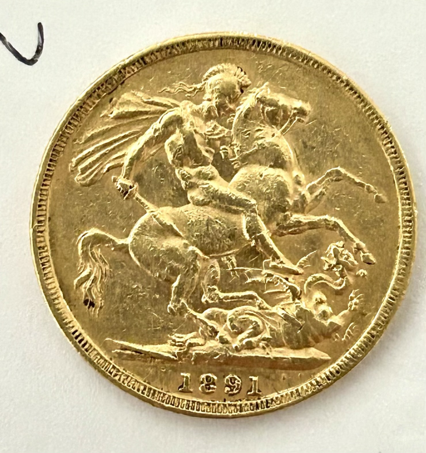 1891 Gold Sovereign, Queen Victoria Jubilee Head, London Mint.