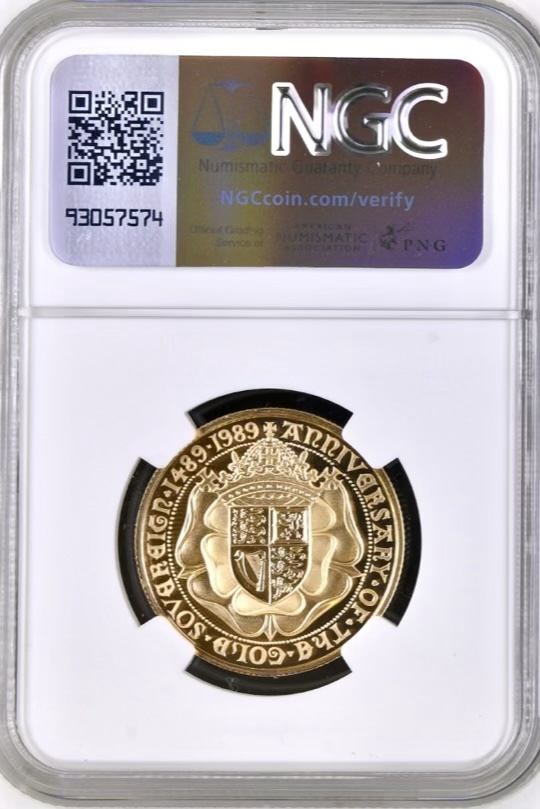 To commemorate the 500th anniversary of the first hammered gold sovereign coin issued by King Henry VII in 1489, the designs chosen for both sides of the 1989 gold coins reflect the designs originally used five centuries earlier. Very few coins or currencies can boast such lengthy service.