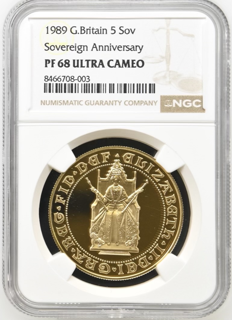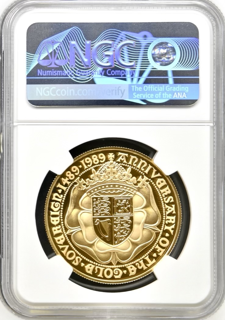 1989 Gold Proof Five Pounds Sovereign (£5 / 5Sov), NGC Graded PF68 Ultra Cameo, Tudor Rose.