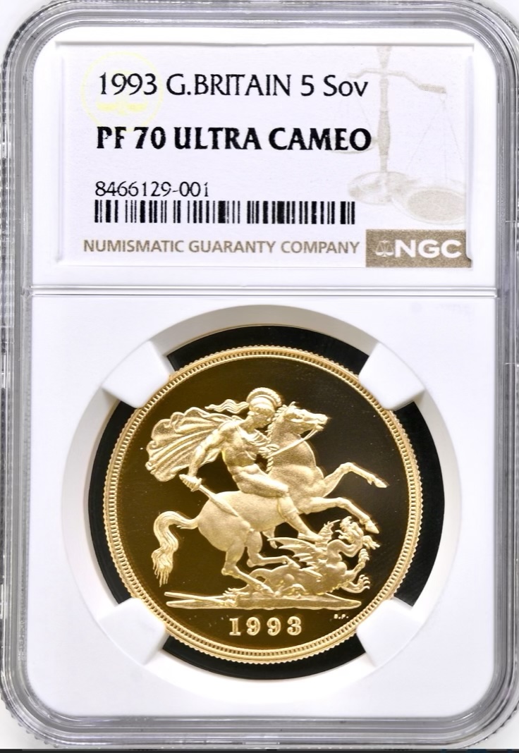 1993 Gold Proof Five Pounds, Graded PF70 Ultra Cameo.