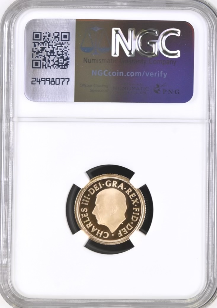 The Sovereign has been closely associated with the British monarchy since it was first struck in 1489 and now His Majesty The King’s official coinage portrait features on the coin’s obverse for the very first time. Personally approved by His Majesty, the portrait was created by British sculptor Martin Jennings. To honour the remarkable life and legacy of Queen Elizabeth II, this edition also features a rare change of reverse design. Benedetto Pistrucci’s iconic depiction of St George slaying the dragon makes way for an interpretation of the Royal Arms by Jody Clark, the designer of Her Majesty’s fifth and final definitive coinage portrait.