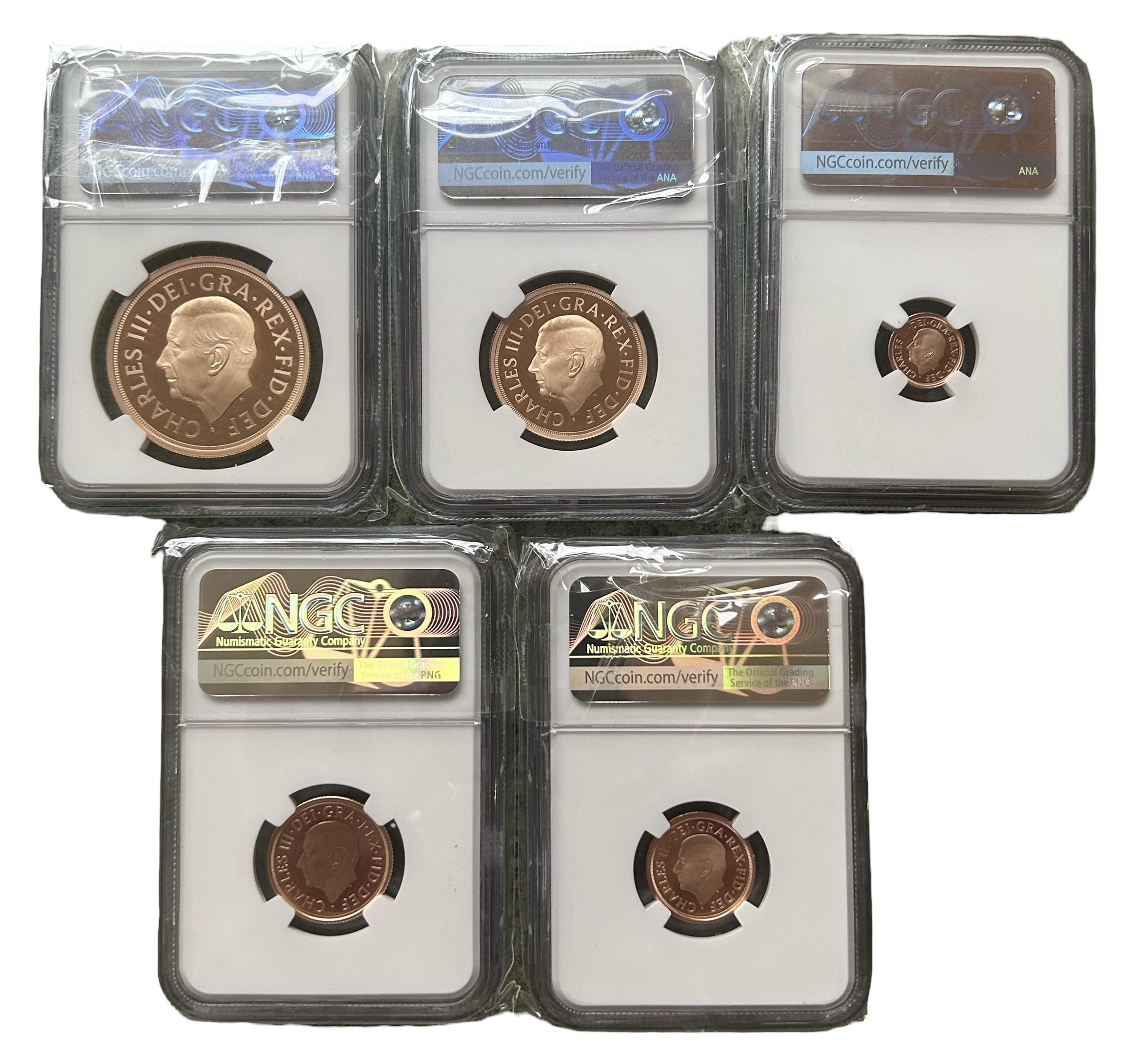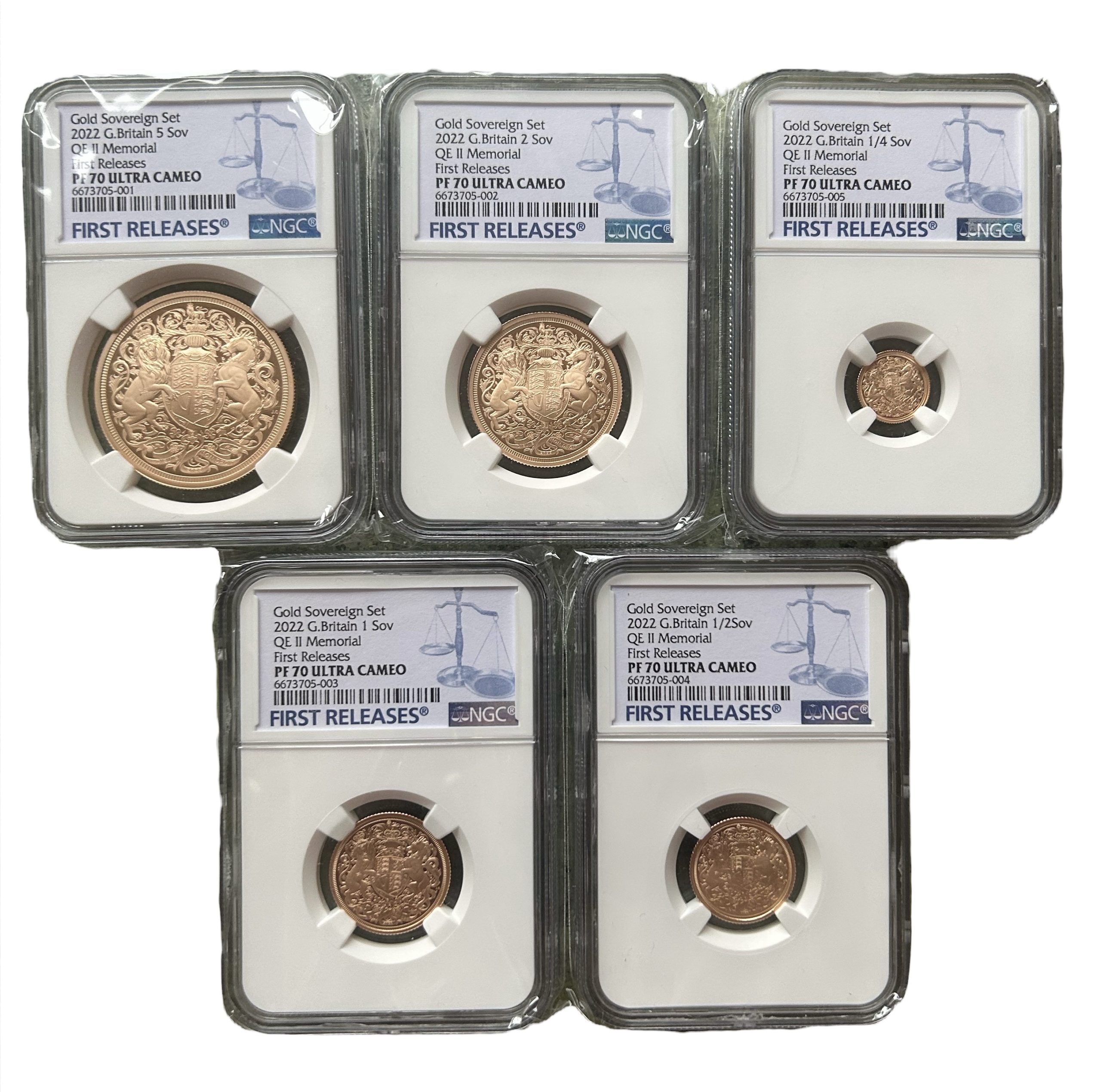 2022 Gold Proof Memorial Sovereign Five Coin Set, NGC Graded PF70 Ultra Cameo First Releases