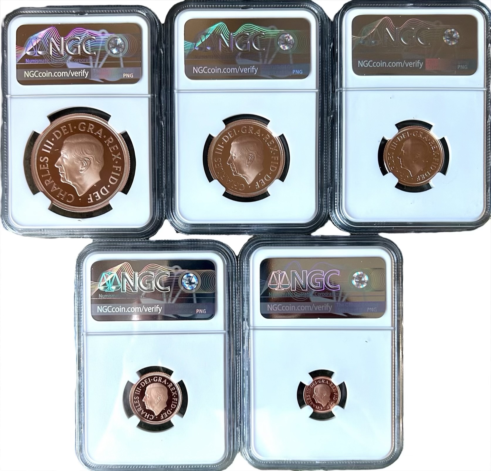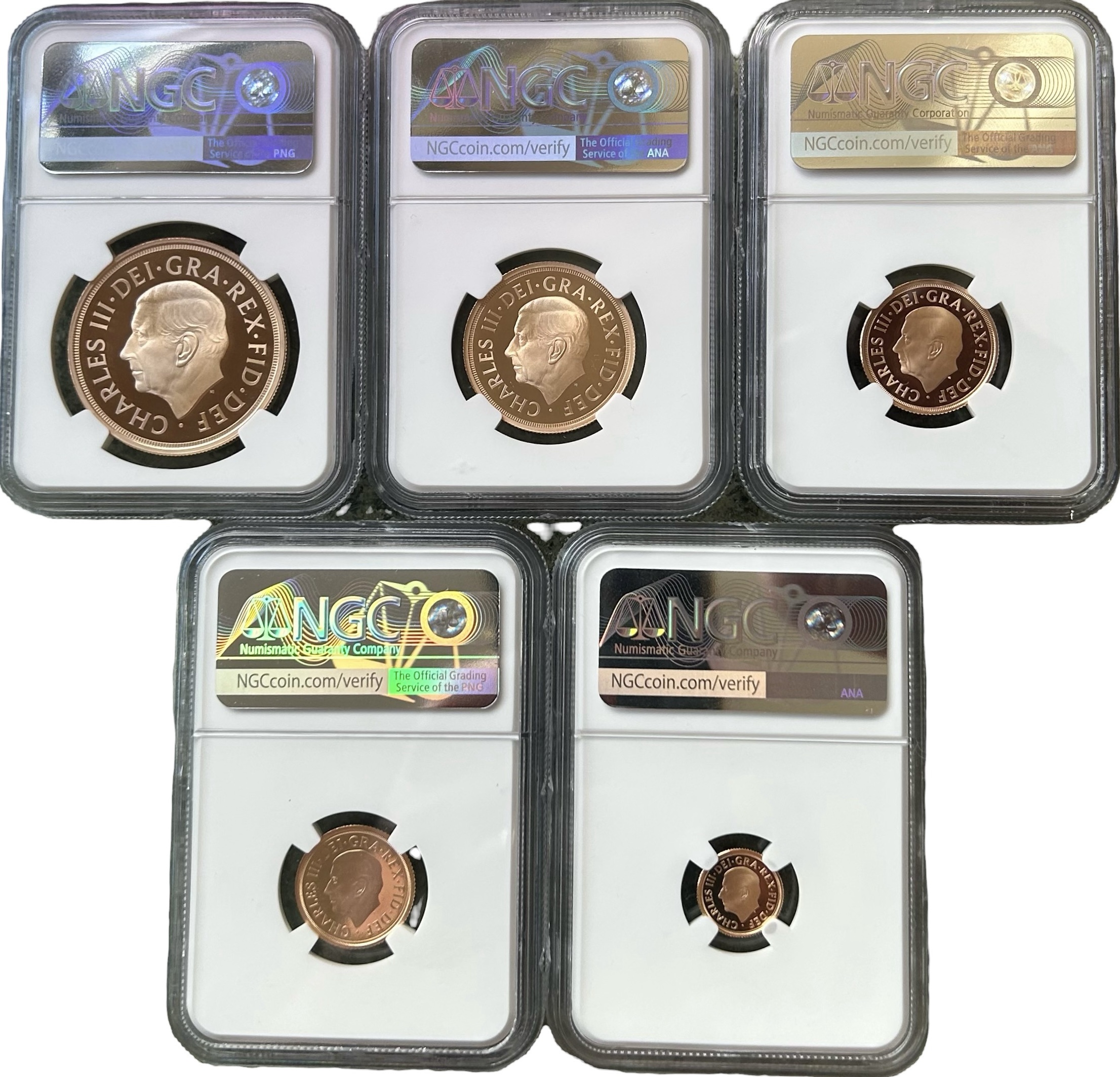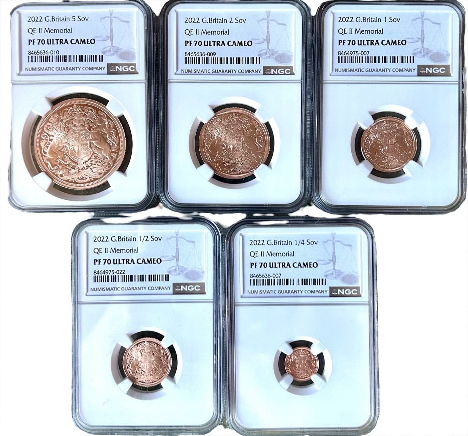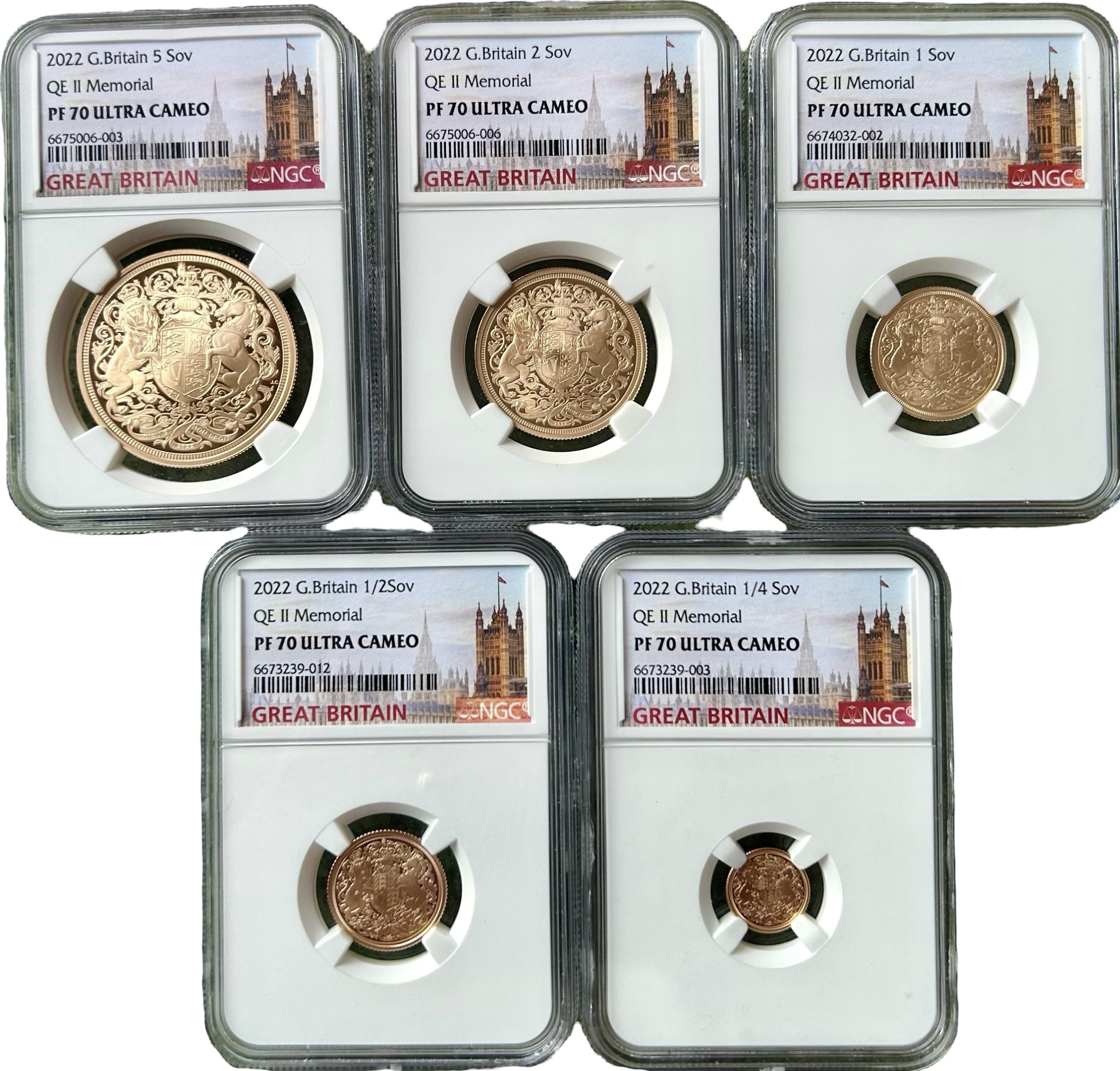 2022 Gold Proof Memorial Sovereign Five Coin Set, NGC Graded PF70 Ultra Cameo