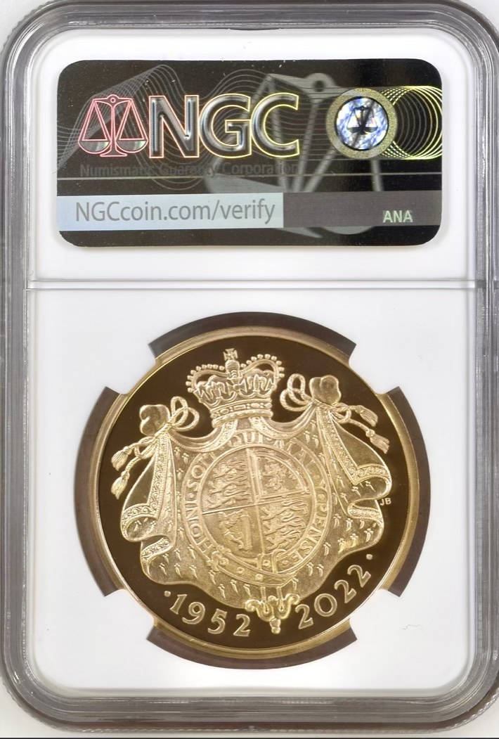 2022 Gold Proof Five Pounds Crown (£5) Queen Elizabeth II Platinum Jubilee, NGC Graded PF70 Ultra Cameo