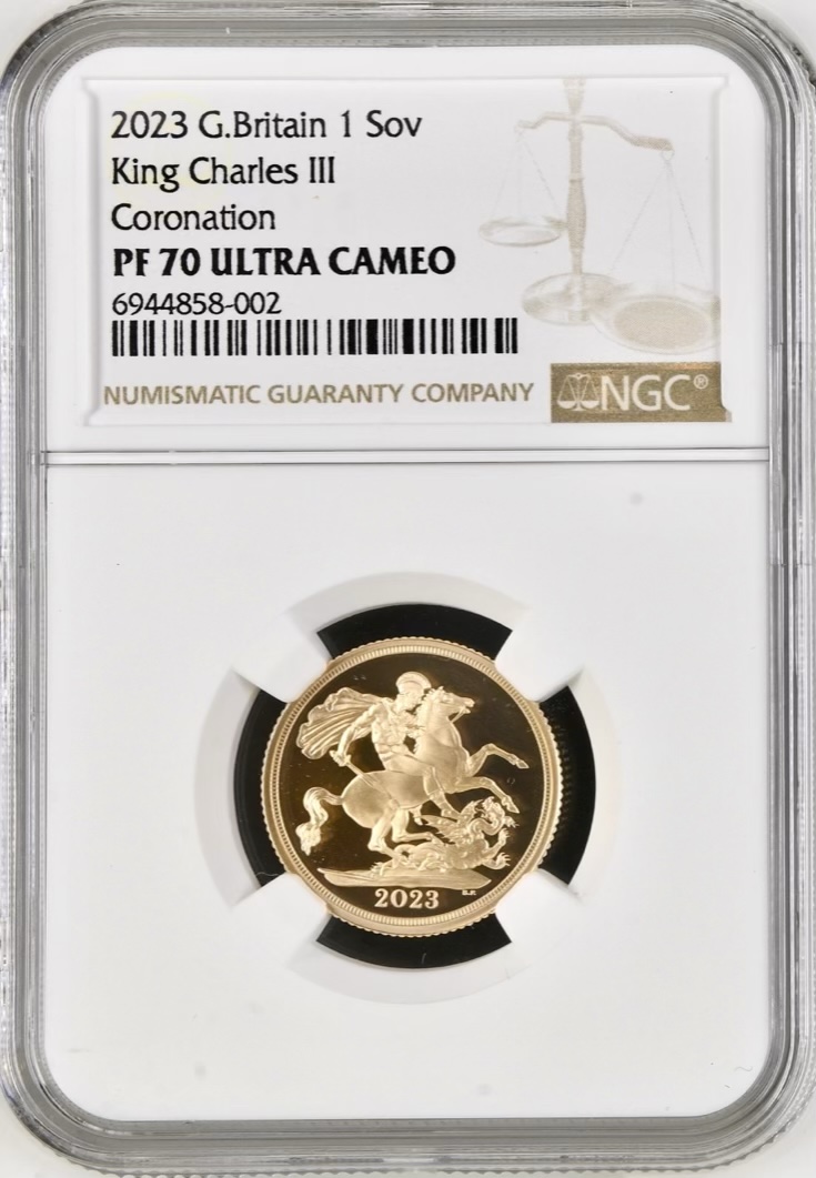 2023 Gold Proof Sovereign, NGC Graded PF70 Ultra Cameo, King Charles III Coronation