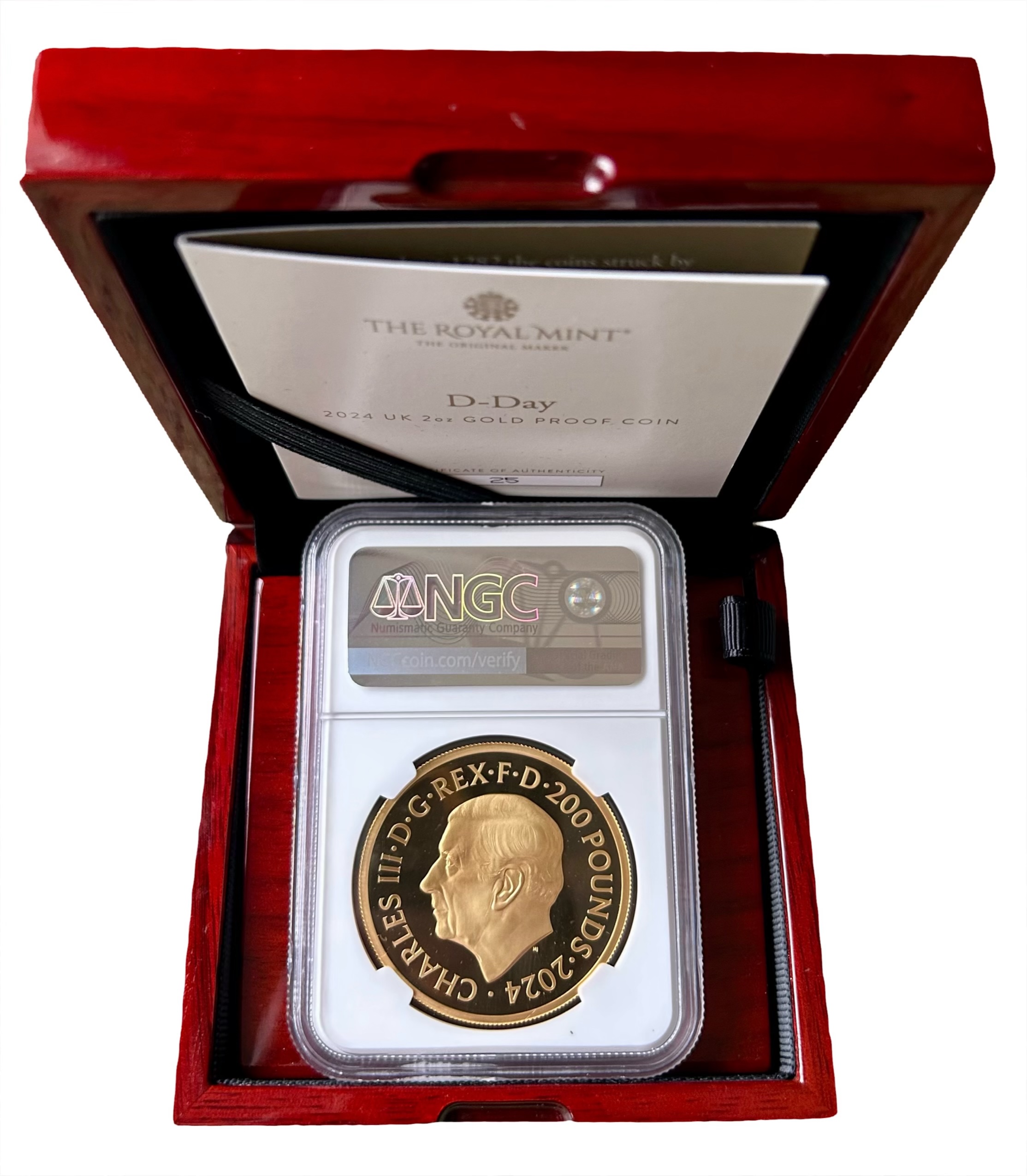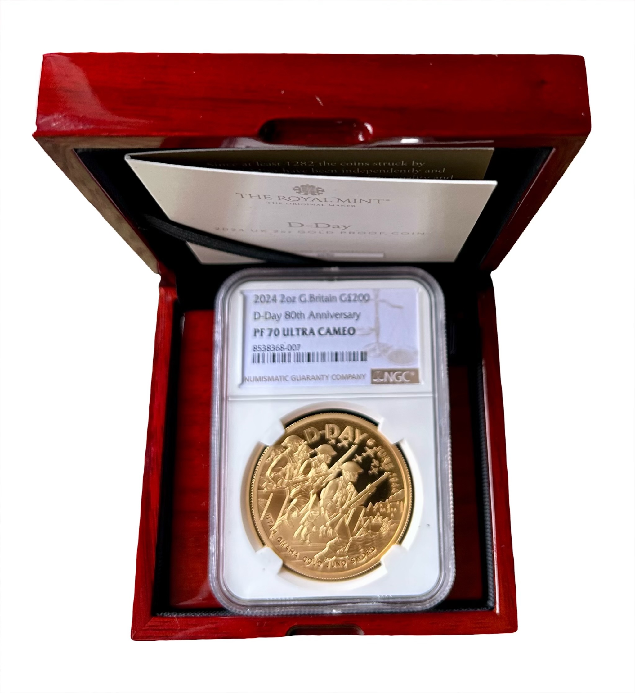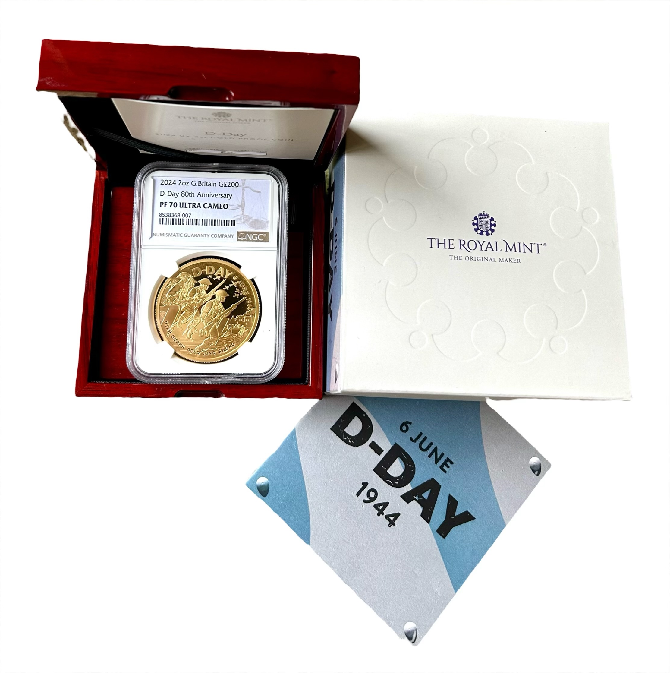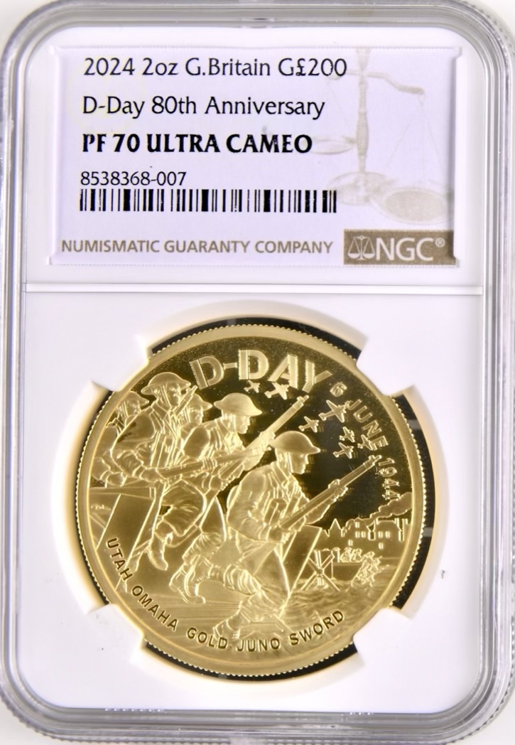 2024 D – Day 80th Anniversary, Gold Proof £200, 2oz coin, NGC Graded PF70 Ultra Cameo