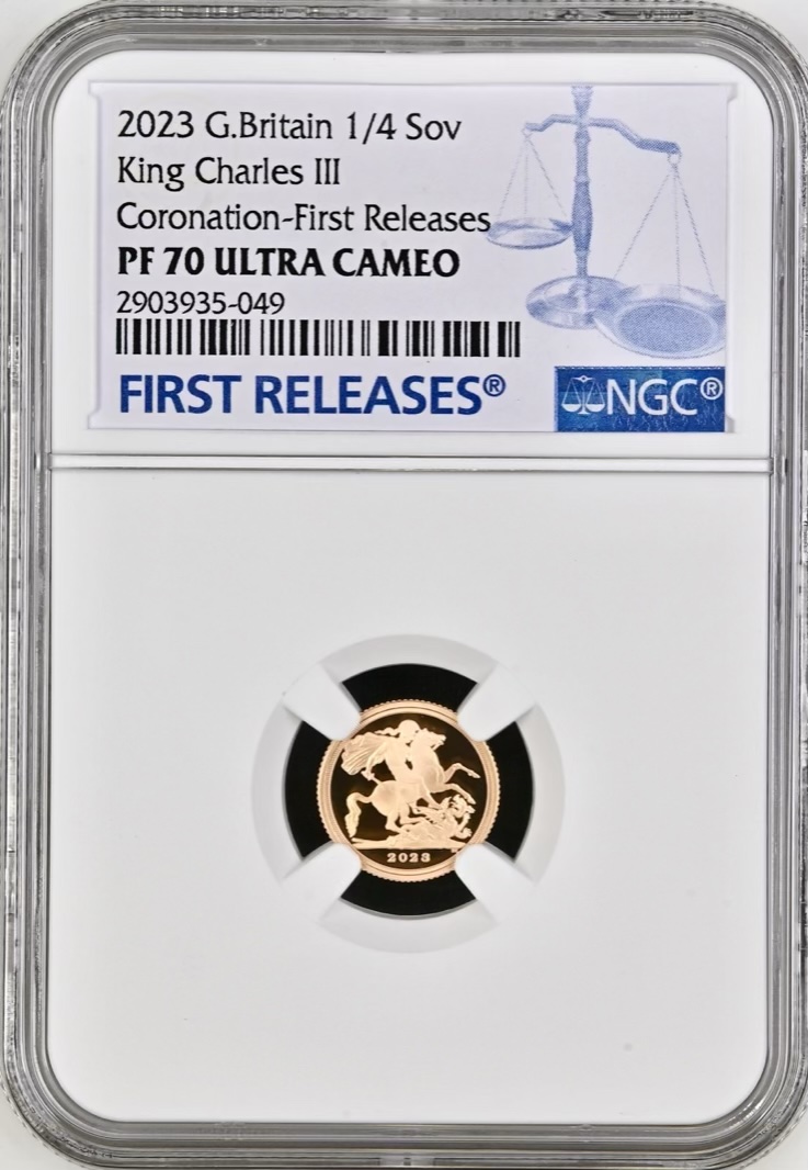 2023 King Charles III Coronation, Gold Proof Quarter Sovereign, NGC 1/4sov, PF70 Ultra Cameo First Releases