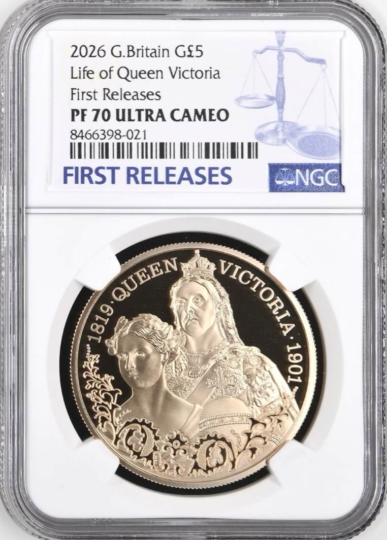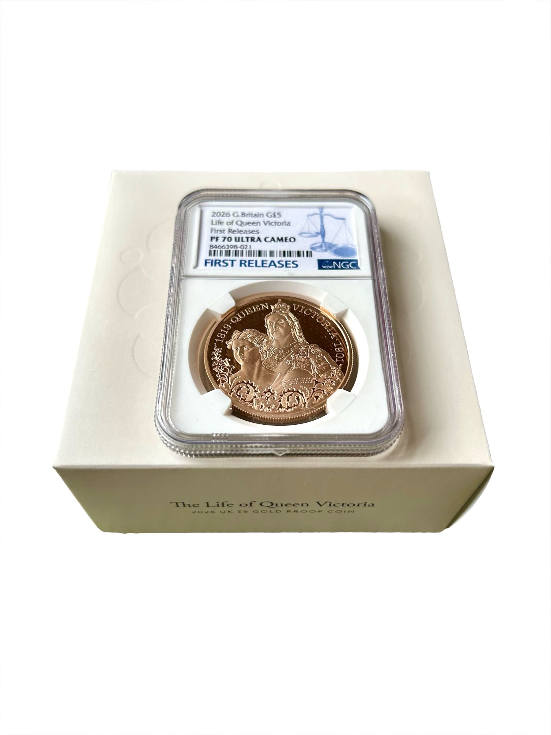 2026 Gold Proof Five Pound Crown (£5), Life Of Queen Victoria. NGC Graded PF70 Ultra Cameo